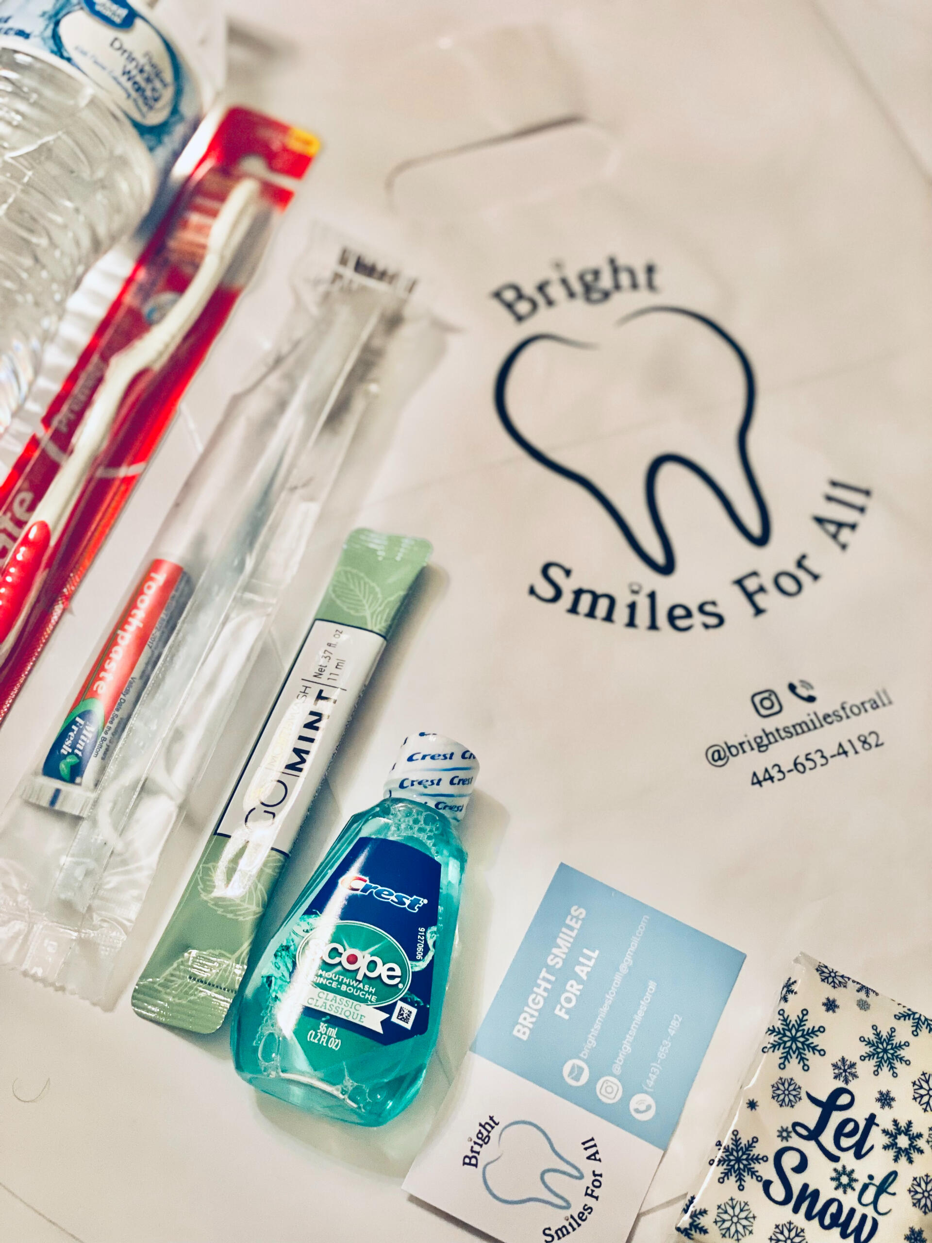 Started in the Spring of 2023, Bright Smiles for All (BSFA) is a fundraiser that aims to provide essential oral hygiene tools for local unhoused communities. By doing this, we hope to improve their oral health and overall well-being.Through distributing dental care packages, we seek to empower and support those in need by addressing a critical, yet often overlooked aspect of their health.At BSFA, we believe that everyone deserves access to basic oral health hygiene regardless of their socioeconomic status. We are also committed to promoting dental health equity and reducing oral health disparities in our community.We spread smiles and improve lives one toothbrush at a time.